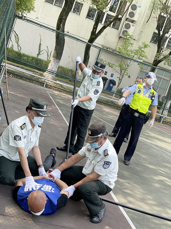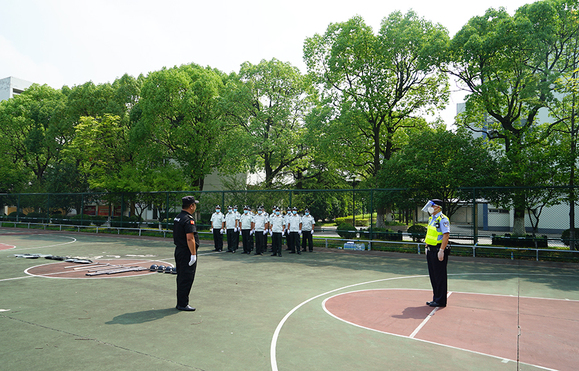 在学校中区操场,后保处处长张永生到场动员指导,临港高校派出所张华副所长现场对我校安保人员在突遇暴恐事件时的处置和各类防暴器械的使用与战术配合、防卫与人员控制等技能依次进行了专业讲解和实战培训。