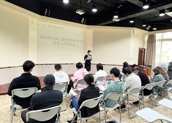 为贯彻落实习近平总书记关于教育的重要论述和全国教育大会精神,进一步强化学校美育的育人功能,构建德智体美劳全面培养的教育体系,学校于10月9日中午在四号楼西班牙语实训室召开了2022年美育工作布置会。学校基础教学部主任沈李、团委书记杨燕玲,以及美育教研室全体成员出席会议。