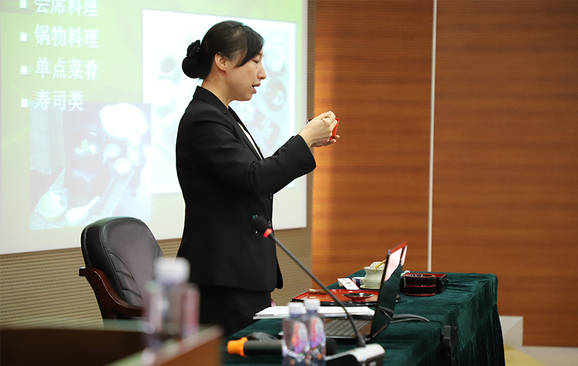 餐饮部经理王蔚从日餐基本礼仪中的走、坐、鞠躬到日本料理的分类,各类餐具的搭配,最后到各类菜肴食用礼仪详细给同学们做了培训。整个过程中穿插有奖问答,生动有趣,同学们参与热情高涨。