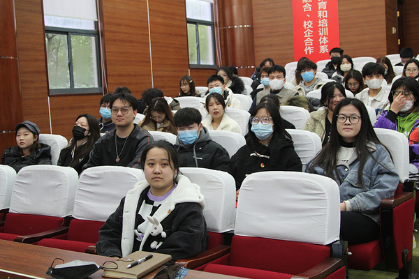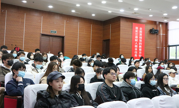 现场聆听讲座的有欧洲语言文化学院和智能制造与信息工程学院学生骨干、入党积极分子,以及校团委青马工程学员。