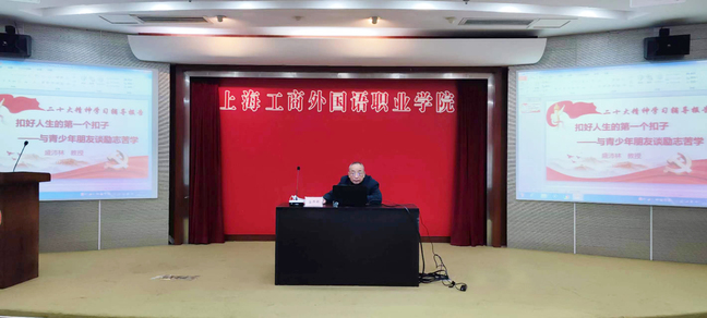 为深入学习宣传贯彻党的二十大精神,进一步营造奋进新征程的校园氛围,11月30日,学校通过上海教育关工委邀请“众鑫有话”讲师团成员,原南京政治学院新闻传播系教授,博士生导师,全国院校教书育人优秀教员,首届全军育才奖学金获得者盛沛林教授到校,为学校青年学子开展党的二十大精神专题辅导报告。报告会由欧洲语言文化学院党总支书记周燕主持。