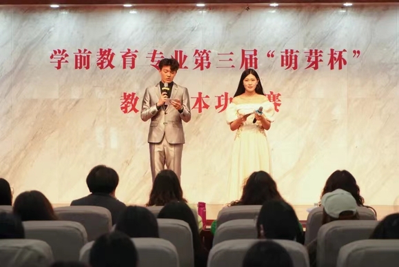 4月12日,新媒体与文法学院举行学前教育专业第三届“萌芽杯”教学技能竞赛决赛暨22级入园见习实训动员教育大会。新媒体与文法学院全体院领导、辅导员团队、学前教育专业全体教师、22级全体学生共同参会。