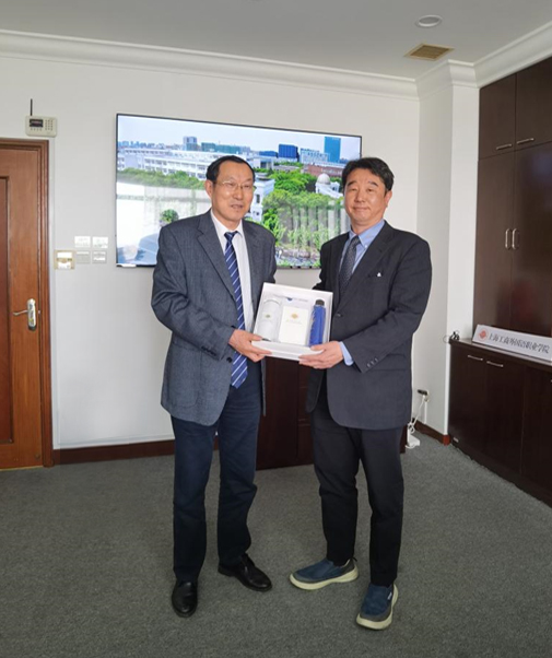 会后,与会人员合影留念,张学龙副校长向裴龙先生赠送纪念品。