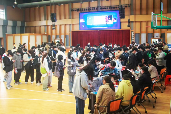 南区体育馆内,各二级学院(部)、教务处、学生处、财务处、招生就业处、实训中心、后保处等分别设置接待窗口,流程清晰、秩序井然,为新生提供更高效便捷的服务。