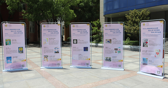 此次“5.25心灵集市”分为展览区和活动区两个板块。在展览区,设立了“漫绘心声 筑梦青春”绘画心理作品展,30余幅优秀作品在展览区展览,表达创作者的心声。在活动区,有英语语言文化学院的“适应改变 四季相伴”心理调适体验活动、欧洲语言文化学院的“心声飘巡 汇流成河”心情盲盒交换活动、新媒体与文法学院的“记忆博物馆”旧物回忆分享活动。