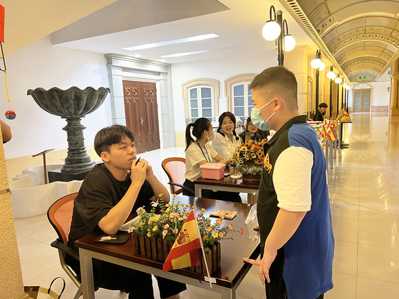 展会初体验,交流无国界体验项目通过在我校外语情景实训室开展小型外贸展会,为同学们的思想品德成长提供了实践条件并建立人生职场体验基础。此次活动一方面拉进了同学们和社会的关系,使学生更好地融入到集体与社会之中,另一方面有效地激发了他们的求知欲,通过接触西班牙以及拉美地区特色商品和美食扩大了国际视野。同时展会中通过对中华特色产品的介绍和制作,也提升了同学们的民族自豪感和自信心。