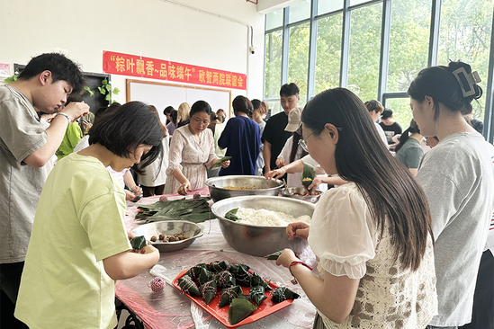 为深入学习贯彻习近平新时代中国特色社会主义思想主题教育,力求将主题教育工作从理论引向实践,欧语学院学生党支部联合智能学院党支部,以关爱困难学生为出发点,以传统文化节日为契机,将关爱困难学生与传承传统文化精神相结合,将弘扬优秀传统文化与主题教育学习相统一,联合智能学院党支部共同举办“粽叶飘香、品味端午”主题活动。学校领导及两院师生和困难生代表一同参加此次活动。