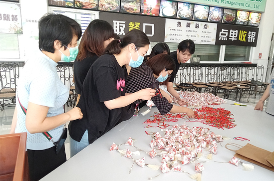 最后,在北区食堂各位师傅协助下,参与师生都品尝了自己劳动成果,大家纷纷表示,自己亲手包的粽子比买来的更香更好吃,分享美食的同时,还领取了传统香包和五彩绳作为纪念品。