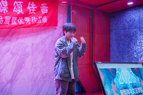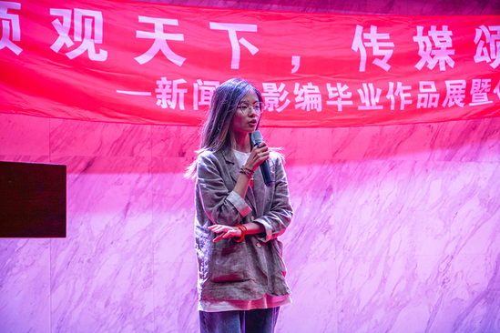 展映伊始,新媒体与文法学院张磊院长受邀致辞,她介绍道,此次展映主题为“视频观天下,传媒颂佳音”,以视频放映、作者交流及杂志展览等形式进行展示毕业生作品,也表示这是一次全新的尝试,希望能借此机会激发学生创作灵感,提升传媒技能,并预祝此次展映顺利完成,将来以更多元创新的方式进行。