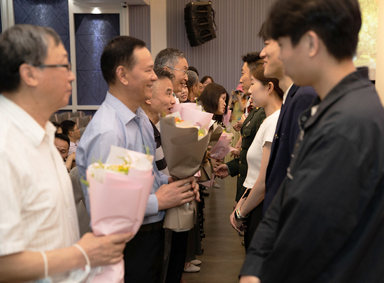 朗诵尾声,优秀毕业生代表们将一束束鲜艳的献花献给了在场的学校领导与教职工代表。至此,毕业典礼在庄重而温馨的氛围中圆满结束!