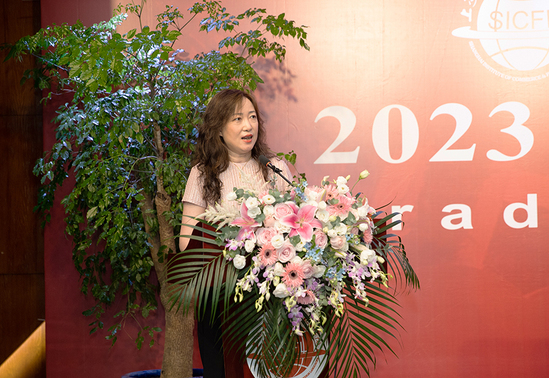 新媒体与文法学院张虹老师代表教师发言,张老师立足毕业心态的转变为同学们送去了她的祝福。在大家即将迈出人生下一步的时刻,用温婉的语气启示同学们在未来的人生路上,首先要坚持底线和规则意识,无愧无畏,坦然处世;同时,保持强烈的好奇心,在学习和实践中实现新的成长;关注生命中的“诗和远方”、享受生命的长度,探寻生活的宽度。