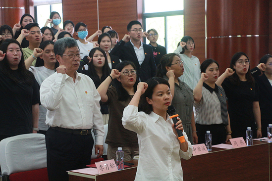 首先,举行预备党员宣誓仪式。由东方语言文化学院党总支书记孟晶老师领誓,全体毕业生党员及新加入党组织的教职工党员面向党旗进行了庄严的宣誓,郑重向党旗立下自己永远跟党走的决心。