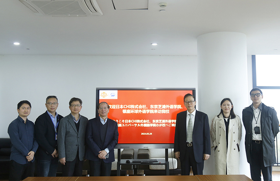 3月28日,日本CHI株式会社、东京芝浦外语学院、银座环球外语学院事务长井上顺时,上海事务所担当王莉一行访问学校。学校副校长姚大伟在思博校园会见了日本客人。国际交流处处长江国滨,创意设计学院副院长曾健,东方语言文化学院日语系副主任秦冉阳,国际交流处唐曦伦陪同会见。