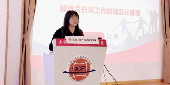 随后,冉蓉副处长就辅导员日常工作规范化管理进行了专题培训,围绕程序的规范与档案的规范两个方面展开,以奖、助学金评定为例,强调了辅导员工作中应做到评定有依据、工作有痕迹、程序合规性,同时保证各项材料和台账的正确性、逻辑性与规范性。