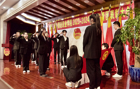 生逢盛世当不负盛世,生逢其时当奋斗其时。最后,大会在嘹亮的团歌声中落下帷幕。此次表彰大会既是对学校共青团工作的肯定和鞭策,也是对全校各级团组织和广大团员青年的激励与鼓舞。未来,我校广大青年定将继承和发扬五四精神,争做有理想、敢担当、能吃苦、肯奋斗的新时代好青年,在推进强国建设、民族复兴伟业中展现青春作为、彰显青春风采、贡献青春力量,奋力书写为中国式现代化挺膺担当的青春篇章。