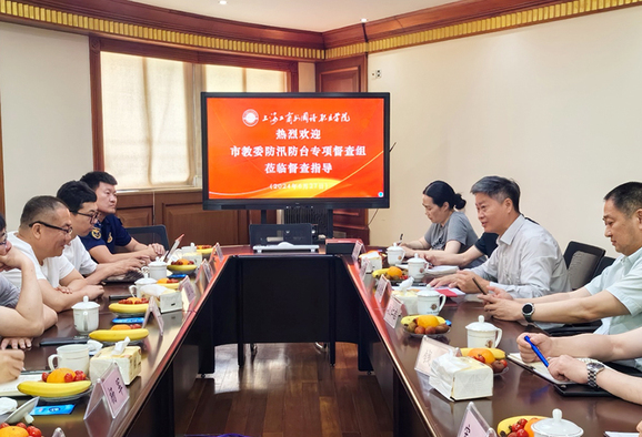 6月27日上午,市教委防汛防台(防灾减灾)督查专家组组长朱健一行7人莅临我校督查防汛防台工作。党委副书记、副校长段仁启,后勤保卫处处长张永生等相关职能部门人员陪同检查。
