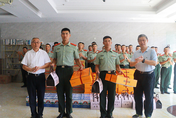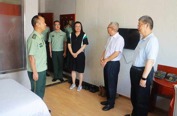 9月13日中午,学校党委书记李月松,校长姚秀平,学工部、武装部部长陈瑜及各二级学院党总支(直属)支部书记等一行前往教官住所现场慰问军训教官。