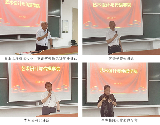 校领导黄正向艺术设计与传媒学院的成立表示祝贺。他指出,这是顺应时代发展趋势,整合优质教育资源,强化跨学科融合与创新的重要举措,致力于打造一个集艺术设计、数字媒体、文化传播等多领域于一体的综合性教学与研究平台,为培养具有国际视野、创新思维和扎实专业技能的复合型人才做出更大贡献。