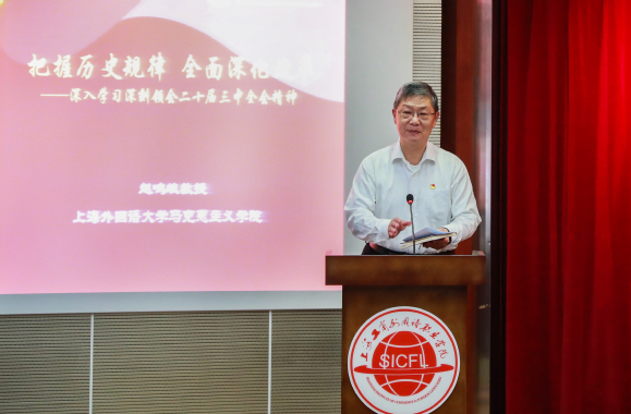 10月18日下午,学校在八号楼二楼报告厅举行学习贯彻党的二十届三中全会精神辅导报告会,市教卫工作党委系统专家宣讲团成员、上海外国语大学马克思主义学院赵鸣歧教授作《把握历史规律 全面深化改革——深入学习深刻领会二十届三中全会精神》专题辅导。此次学习也是学校党委和上海思博职业技术学院党委的联组学习,我校党委书记李月松主持报告会。