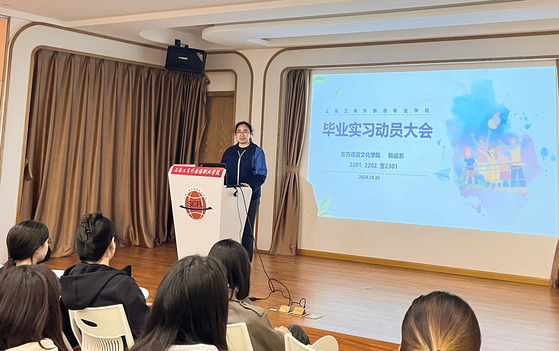 近日,外国语言文化学院韩语系举行2025届毕业实习动员大会,旨在为即将步入社会的韩语系学子提供全方位实习和升学指导,为学生职场过渡或继续深造增添助力。系主任王璐主持大会。