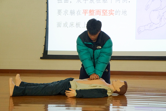 本次培训采取理论学习、实践操作和现场互动相结合的方式进行。理论学习阶段,授课老师围绕心脏骤停、心肺复苏要点、AED使用、海姆立克急救法等重点急救知识技能进行了深入浅出的讲解,并现场演示了正确的胸外按压方法。实践活动环节,在老师的专业指导下,同学们开展了胸外按压、海姆立克急救等应急救护现场实际操作演练,模拟了遇到紧急情况时,实施应急救援的方法。