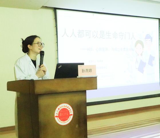 12月3日,惠南社区卫生服务中心全科医生孙燕婷老师,来校为同学们带来“人人都可以是生命守门人”暨AED、心肺复苏、海姆立克急救法专题实践培训。