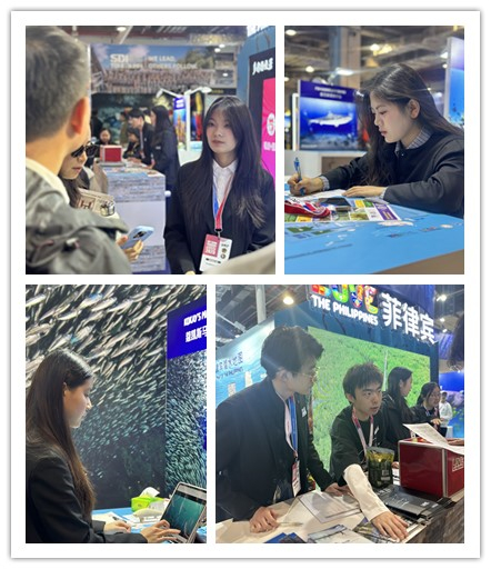 作为菲律宾国家旅游局上海代表处的长期合作伙伴,我校已连续多年选派优秀学生参与国际展会志愿服务。本届展会中,10名志愿者分别对接10家菲律宾参展商,在商务洽谈、产品推介等专业场景中高质量完成翻译任务;另有3名志愿者驻守主展台,积极承担观众引导、咨询解答及展区协调等工作,日均服务国际客商逾1000人次。