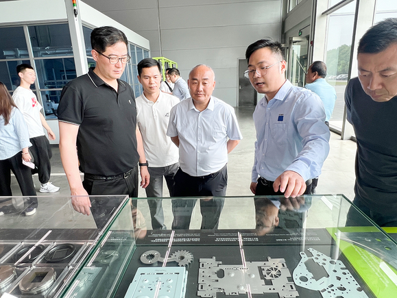 在通快(中国)有限公司,调研组参观了激光应用中心与智能工厂车间,并与企业技术团队就激光器研发、3D打印技术等展开交流。该公司人力资源经理杨佳介绍,通快通过双元制模式实现校企课程共建、师资共享,企业工程师直接参与教学,确保课程所授技术标准与产业需求同步。