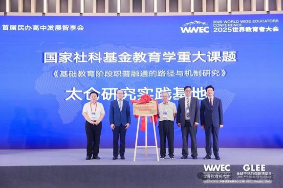 大会期间,由国家社科基金教育学重大课题“基础教育阶段职普融通的路径与机制研究” 牵头设立的太仓研究实践基地正式揭牌。该基地的成立,是高中分会推动职普融通理论研究与实践落地的重要举措,也标志着中基产教在民办高中职普融通领域的实践探索获得行业高度认可,将为全国民办高中提供宝贵的实践平台,助力职普融通政策在基层教育场景中有效落地。