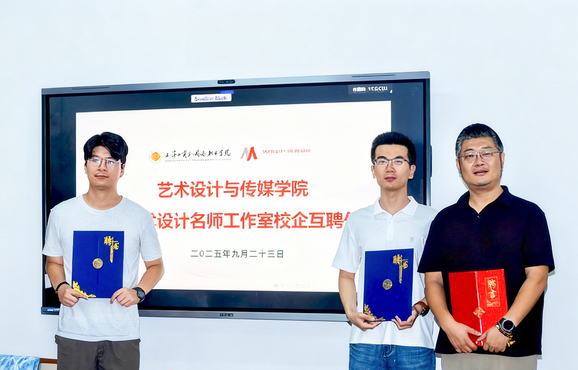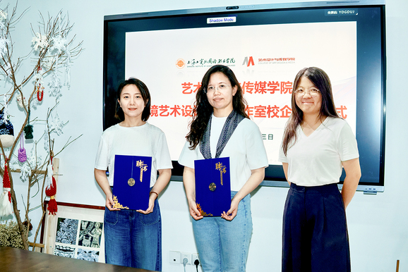 为深化产教融合、推动校企资源双向流动,助力环境艺术设计学科高质量发展,9月23日,在艺术设计与传媒学院李宪锋院长统筹部署下,环境艺术设计名师工作室牵头举办校企互聘仪式。工作室负责人、艺术设计与传媒学院副院长兼环艺专业主任和水英教授主持仪式,上海墨刻景观工程有限公司设计总监任庆、上海艺术品博物馆党支部书记兼宣传部副部长梅婷婷,及工作室校内学员王玉、何孟闰、王南奇、刘敏等四位老师共同参与。仪式以“校企协同、双向赋能”为核心,通过聘书颁发与互动交流,为人才培养、企业发展及文化传承搭建多元合作桥梁。