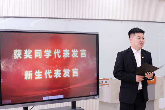 随后,金涛同学作为获奖代表分享参与各项赛事的心得。他表示,扎实的法律基础、严谨的思维习惯和持续的自我要求,是成长为合格法律人的关键。