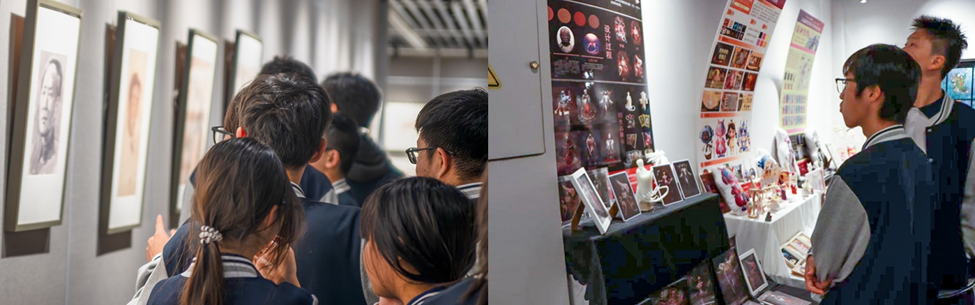 随后进行校园参观。学生与家长在带队老师的引导下参观了徐悲鸿艺术馆、艺传学院展厅及多个专业工作室,通过近距离接触实践场景和专业设备,对未来的学习环境与专业实践有了更直观的了解。