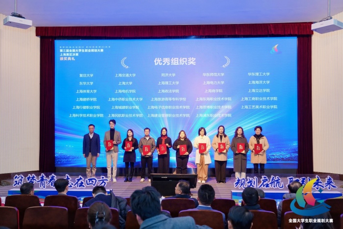 除核心金奖突破外,我校学子与教师在本次赛事中还多点开花、收获颇丰:应用外语学院孟晶老师斩获教学赛道职教组银奖;应用外语学院西班牙语专业王思源同学、智能建造与制造学院工程造价(中高职贯通培养)专业应志辰同学、徐悲鸿艺术学院游戏艺术设计(中高职贯通培养)专业李明慧同学荣获成长赛道职教组铜奖;卢小希、张彬晨两位老师获评优秀指导教师;上海思博职业技术学院凭借完善的组织保障、突出的赛事成果,被授予优秀组织奖。一系列荣誉的取得,充分彰显了我校生涯教育与就业指导工作的扎实成效,也体现了“以赛促学、以赛促教、以赛促就”的赛事育人理念。