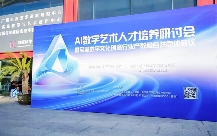 12月26日至28日,全国数字文化创意行业产教融合共同体2026年度工作交流活动暨AI数字艺术人才培养研讨会在浙江传媒学院举行,期间,我校被正式增补为“全国数字文化创意行业产教融合共同体常务理事单位”。学校教师代表何孟闰老师参会,与来自全国各地的行业企业、高等院校、科研院所的专家学者齐聚一堂,共商数字文创行业产教融合大计,共探AI浪潮下数字艺术人才培养新路径。