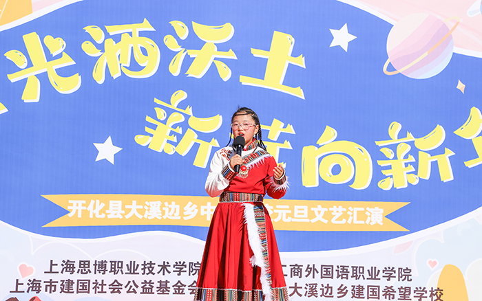 12月29日,新年前夕,上海工商外国语职业学院、上海思博职业技术学院第三批支教小分队奔赴浙江衢州开化县大溪边乡建国希望学校(开化县大溪边乡中心学校),以教育接力传递温暖,用爱心行动迎接新年。校领导黄正带队,人力资源部部长汤丽佳、人文与教育学院院长张金福随行,护送青年海归博士朱陈希老师赴开化支教,并探望慰问坚守岗位的曾军、左月明两位支教老师,以实际行动延续跨区域教育帮扶的温暖约定。当天,开化县大溪边乡中心学校(以下简称“中心学校”)以一场“星光洒沃土 新芽向新年”元旦文艺汇演致谢帮扶情谊,同步举行的捐赠仪式活动,为山区孩子送去新年温暖,助力乡村美育持续发展。