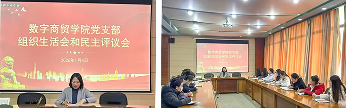 1月4日中午,上海工商外国语职业学院数字商贸学院党支部在八号楼二楼会议室召开2025年度党支部组织生活会暨民主评议会,会议由党支部书记于丽艳主持,支部全体党员参会。会议围绕深入学习贯彻习近平新时代中国特色社会主义思想,全面总结年度工作成效,严肃开展批评与自我批评,进一步凝聚共识、明确方向,为2026年支部党建工作与学院发展奠定坚实基础。