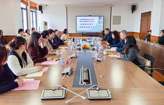 会上,副校长沈小平欢迎到访师生,介绍思博国际护理学院办学历史与专业实力,学院深耕护理教育23载,是全国职业院校健康服务类示范专业点、上海市重点专业,在教学管理与实操培养方面已形成特色鲜明的培养体系;同时提及校内学生来自全国各地,其中浙江学子占比颇高,校园开放融合氛围浓厚,有助交流生快速融入学习生活。