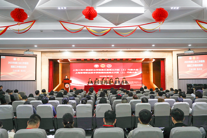 4月3日下午,上海工商外国语职业学院第五届三次教(工)代表大会、上海思博职业技术学院第四届三次教(工)代表大会在工商外四号楼四楼报告厅隆重召开。万峰、于莹、黄正等校领导,两校正式代表、特邀代表、列席代表出席会议。大会由党委副书记、副校长张辉主持。